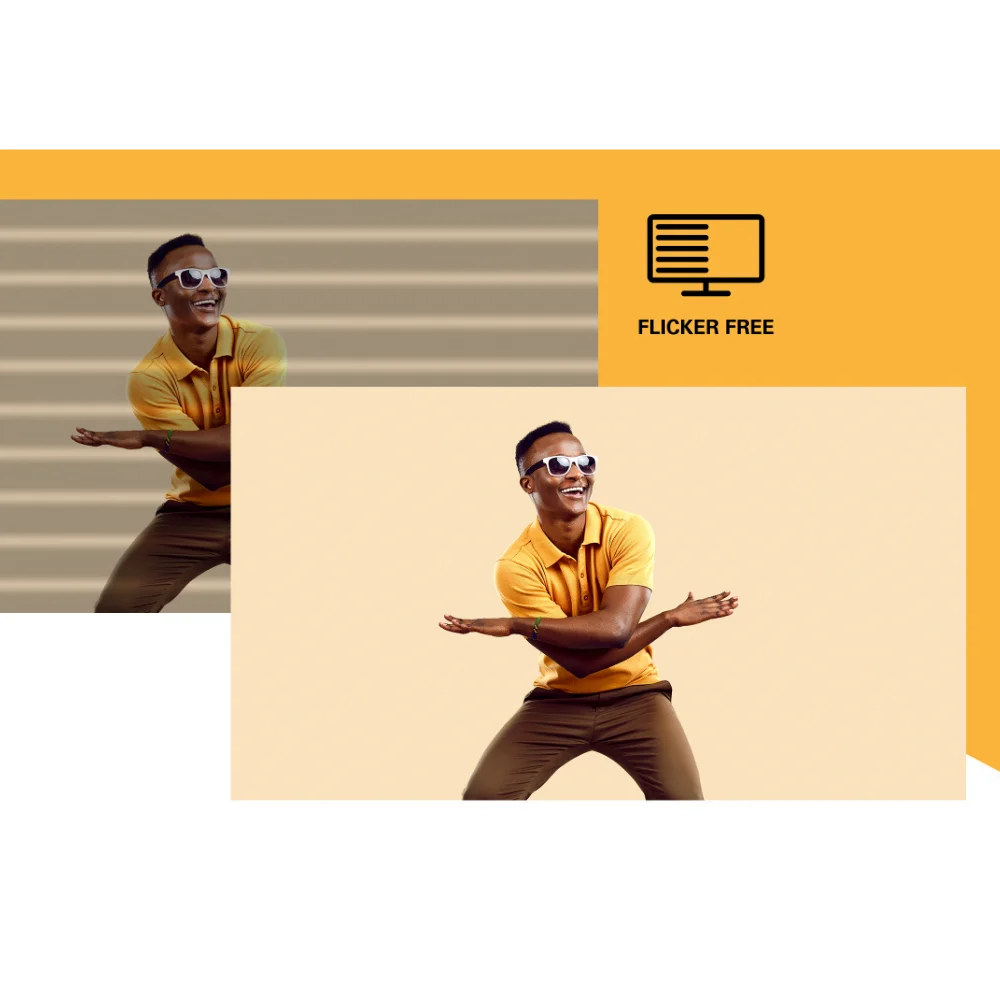 טכנולוגיית Flicker‑Free עושה שימוש בתאורת DC יציבה ומפחיתה הבהובים, כך שמאמץ העיניים והעייפות מצטמצמים למינימום, ותוכלו ליהנות מסשנים ארוכים בנוחות מלאה.